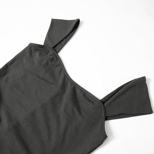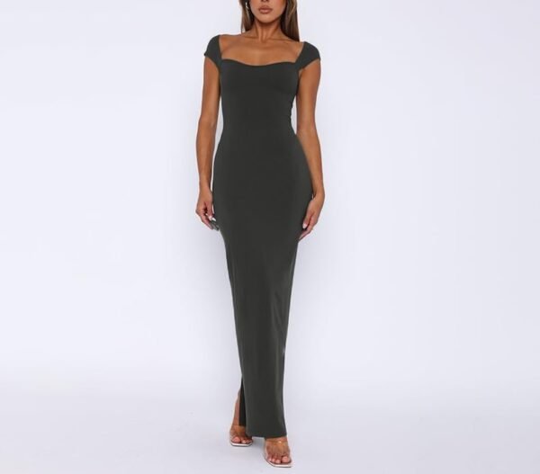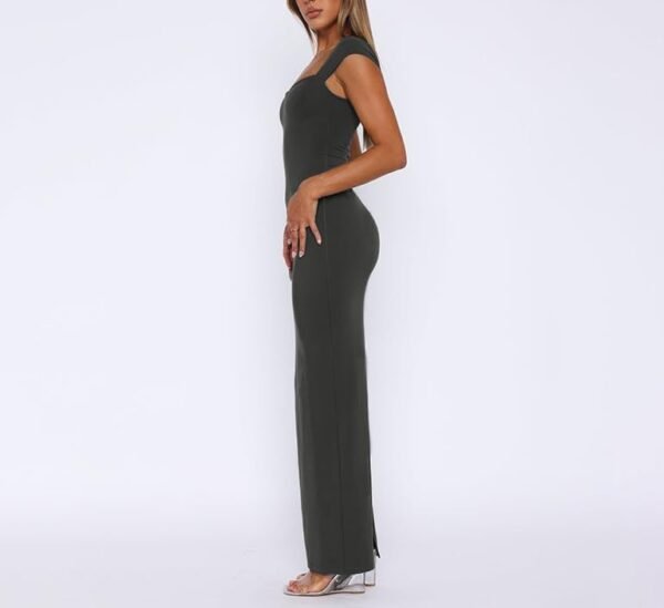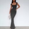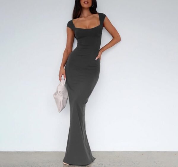 New Elegant Solid Color Square Neck Sleeveless Slim Fit Fishtail Dress Nightclub Dress, Small Tall, Dark Gray