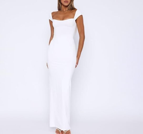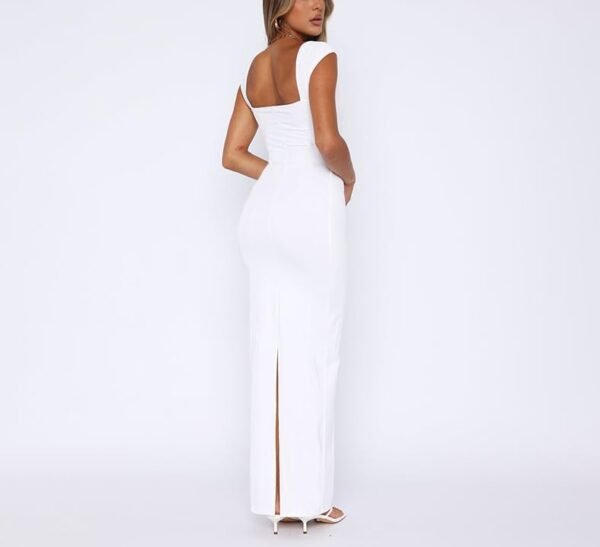 New Elegant Solid Color Square Neck Sleeveless Slim Fit Fishtail Dress Nightclub Dress, Small Tall, White