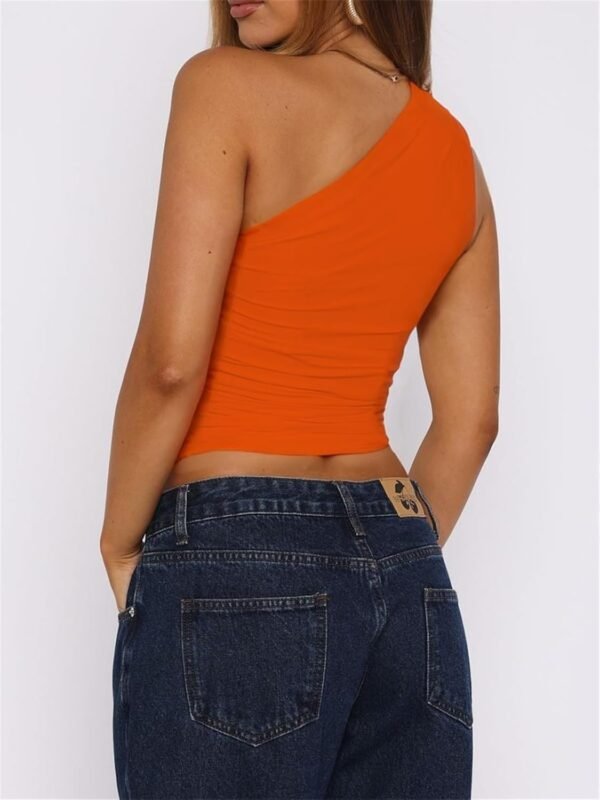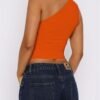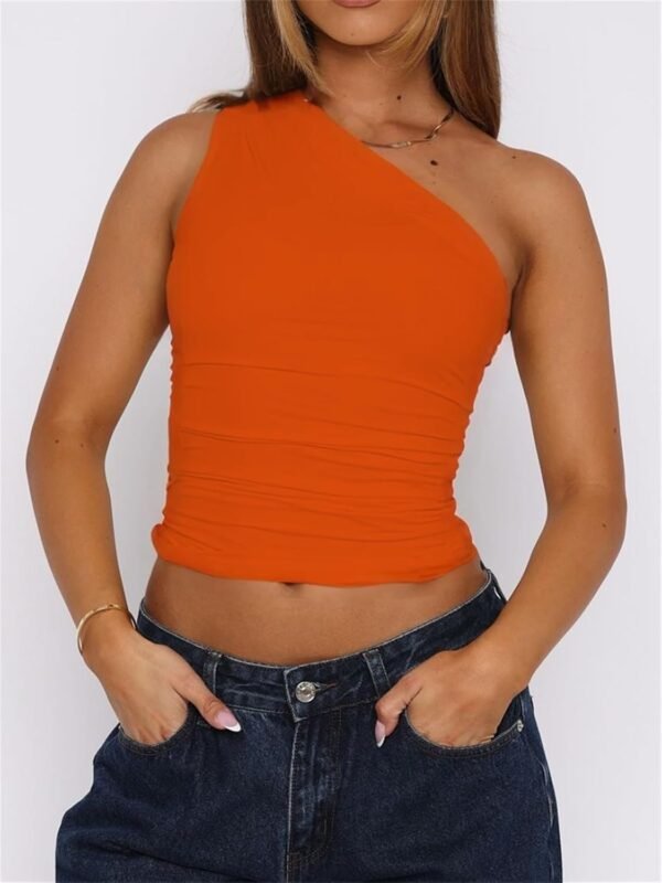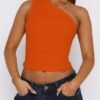 Women One Shoulder Going Out Crop Tank Tops Slim Fit Sleeveless Shirts Y2k Cute Top Orange