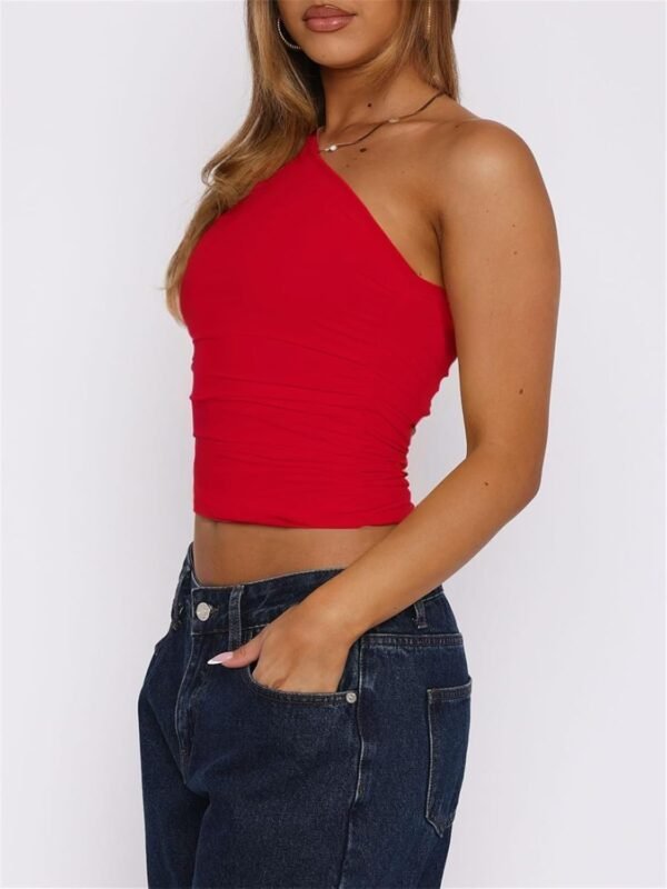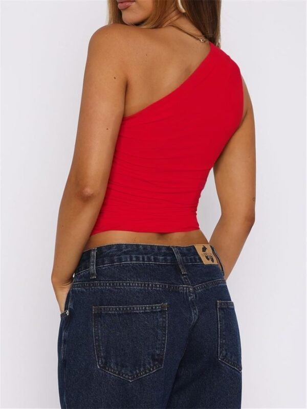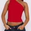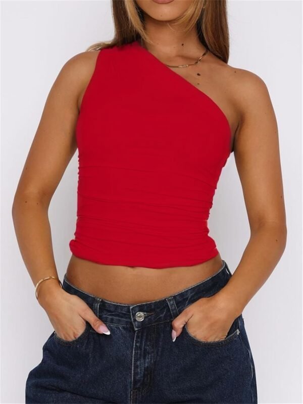 Women One Shoulder Going Out Crop Tank Tops Slim Fit Sleeveless Shirts Y2k Cute Top Red