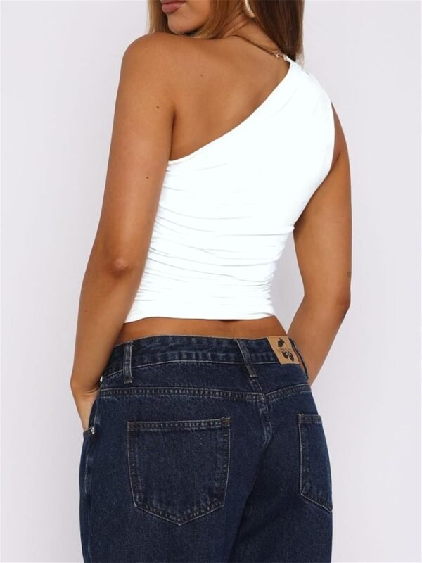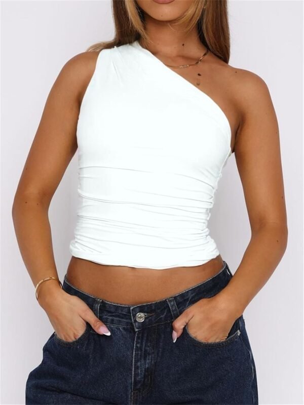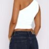 Women One Shoulder Going Out Crop Tank Tops Slim Fit Sleeveless Shirts Y2k Cute Top White